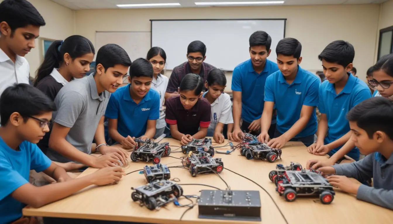 Students build and program their own robots, applying their knowledge in real-world scenarios.